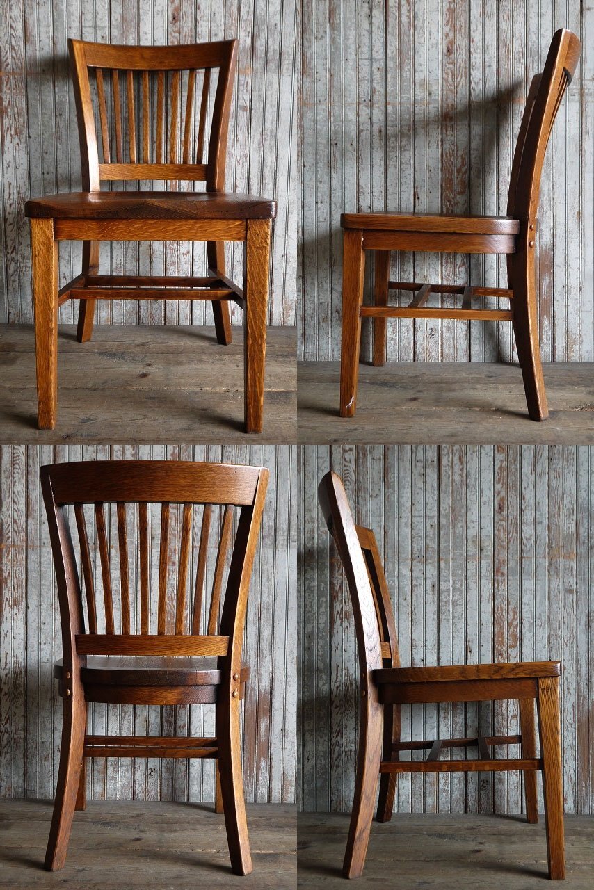 アメリカで買い付けたアンティークのウッドチェアです。1920年代頃のもので均整がとれたフォルムに長い年月を経たウッドの風合いがアンティークならではの趣があります。シンプルであたたかみのあるデザインが雰囲気良くインテリアのアクセントにお勧めです。状態ですが、経年による小傷や擦れ、角や縁に細かいカケ、打痕傷、汚れ、色褪せや色抜け、塗装劣化や塗装の剥がれ、底の擦り減り、多少の歪みやガタつき等はございますが雰囲気を損なうようなダメージはなくアンティークならではの良い状態かと思います。あくまでアンティークになりますのでご理解いただける方のご購入をよろしくお願い致します。