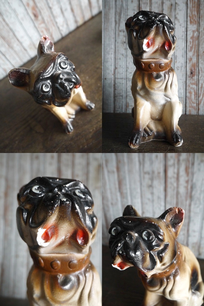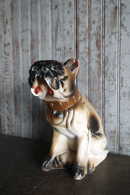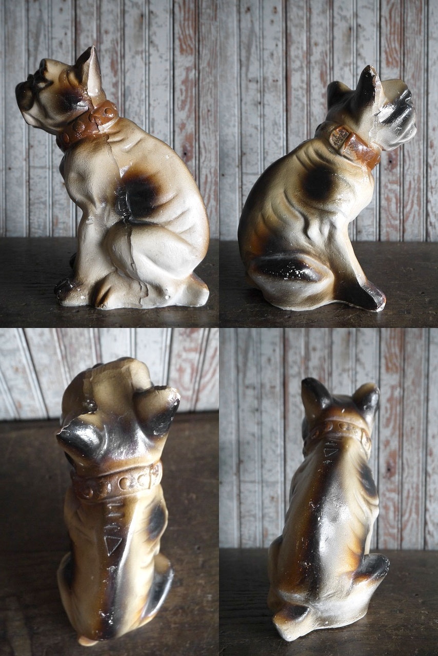 アメリカで買い付けたアンティークのオブジェです。1940年代頃のドッグモチーフの石膏製で経年による風合いがアンティークならではの趣があります。愛らしいデザインで雰囲気がありますのでお部屋やショップ等のインテリアのアクセントにお勧めです。状態ですが、小傷や擦れ、汚れ、くすみ、色褪せ、塗装剥がれ、カケ等はございますが雰囲気を損なうようなダメージはなくアンティークならではの良い状態かと思います。あくまでアンティークになりますのでご理解いただける方のご購入をよろしくお願い致します。